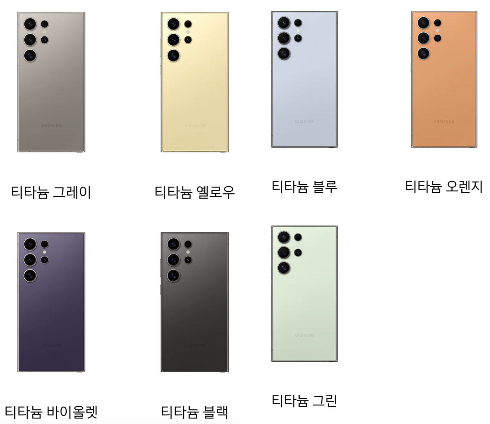 갤럭시S24 울트라는 티타늄 블랙, 티타늄 그레이, 티타늄 바이올렛, 티타늄 옐로우 등 4가지 색상으로 출시됐어요.
